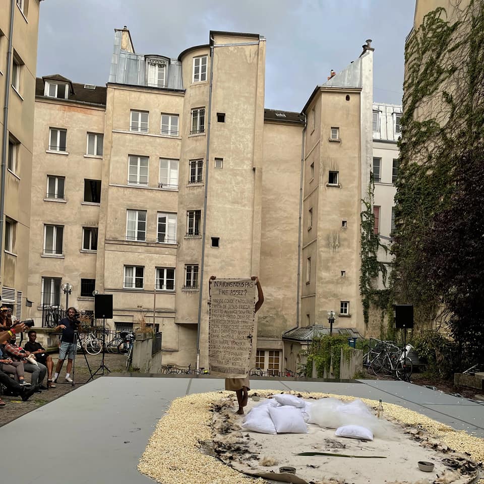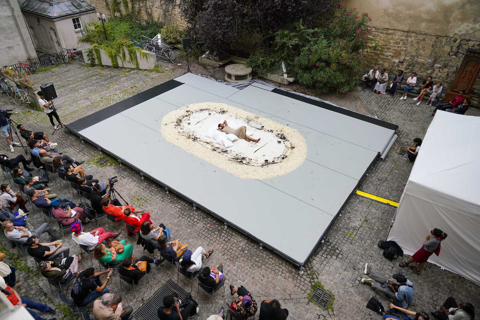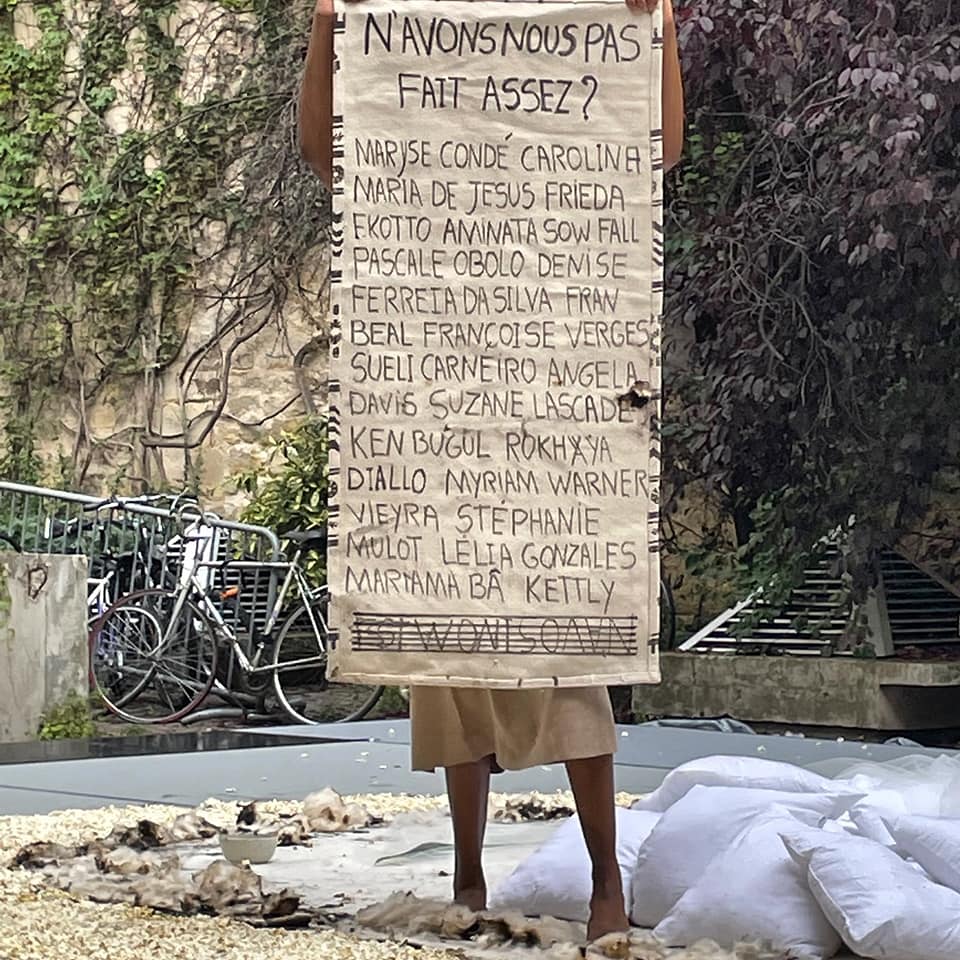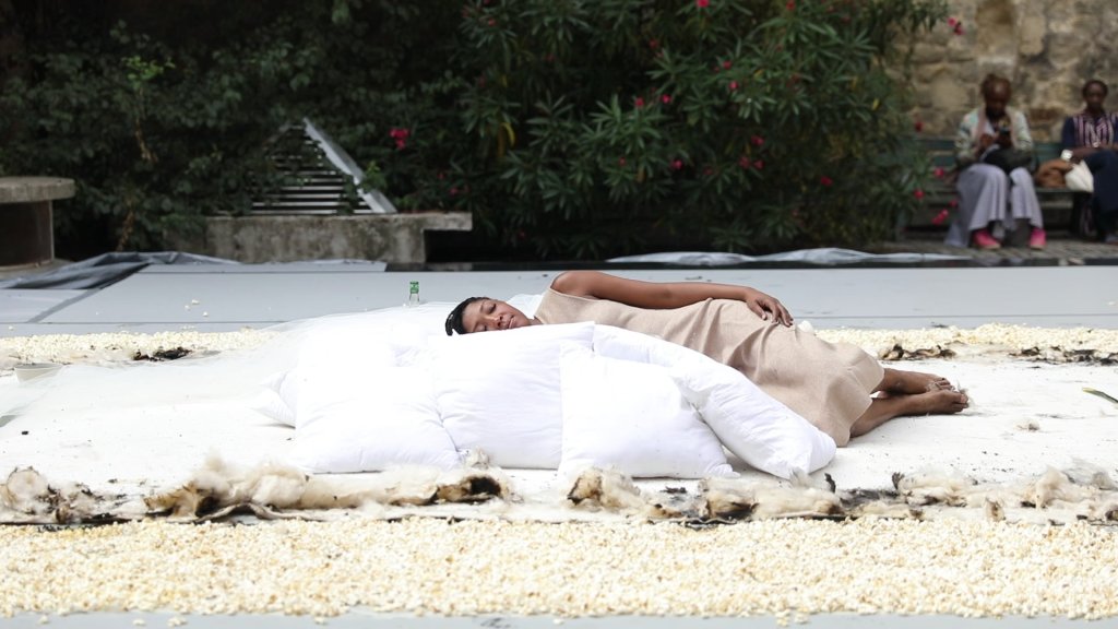 La performance « Guérir le regard blanc, n’avons-nous pas fait assez ? » est la mise en place d’une dynamique relationnelle de la réparation dans laquelle le repos du corps de l’artiste sera mis en scène.