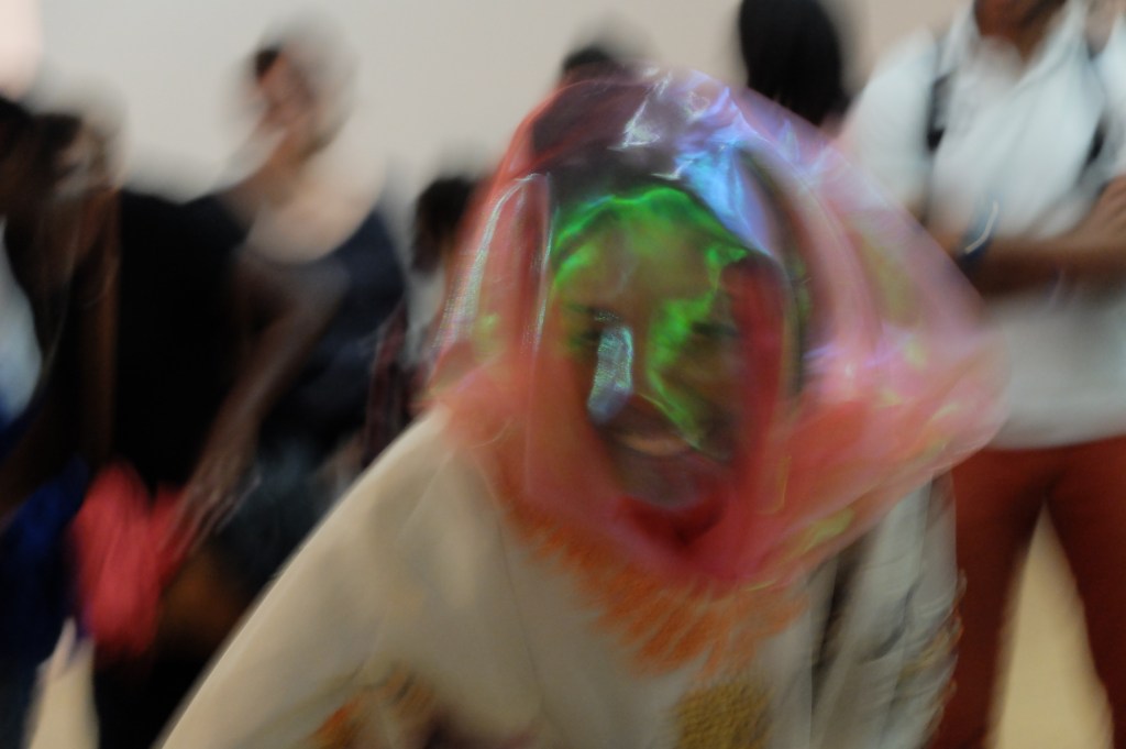 - Élévation collective du manteau : le manteau est relation. Au sein d’une institution artistique, le manteau entame un dialogue in situ sur les processus d’invisibilisation existants. Pendant ce processus, les participants seront conduits à réfléchir, voire identifier, d’autres dispositifs au sein de l’art de « mise en contemplation forcée » d’objets destinés à subir des transmutations. Certains participants sont conviés à une danse collective avec le manteau.